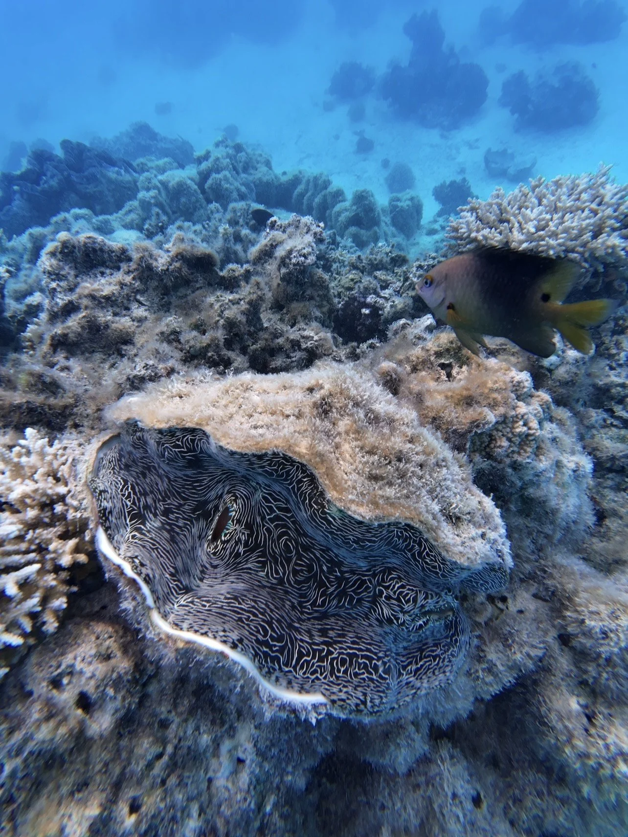 The next morning we were up bright and early, ready for our snorkel adventure! Our first stop was to see the giant clam farms, some of them growing to be the size of a large child! The clams actually seemed to glow the closer you got to them, all different colors! They were absolutely mesmerizing, making it hard to want to leave and head to our next stop. Michael armed with his GoPro managed again to get some awesome footage. But good thing we did, as next up on the tour was the GT’s, the Giant Trevally fish.