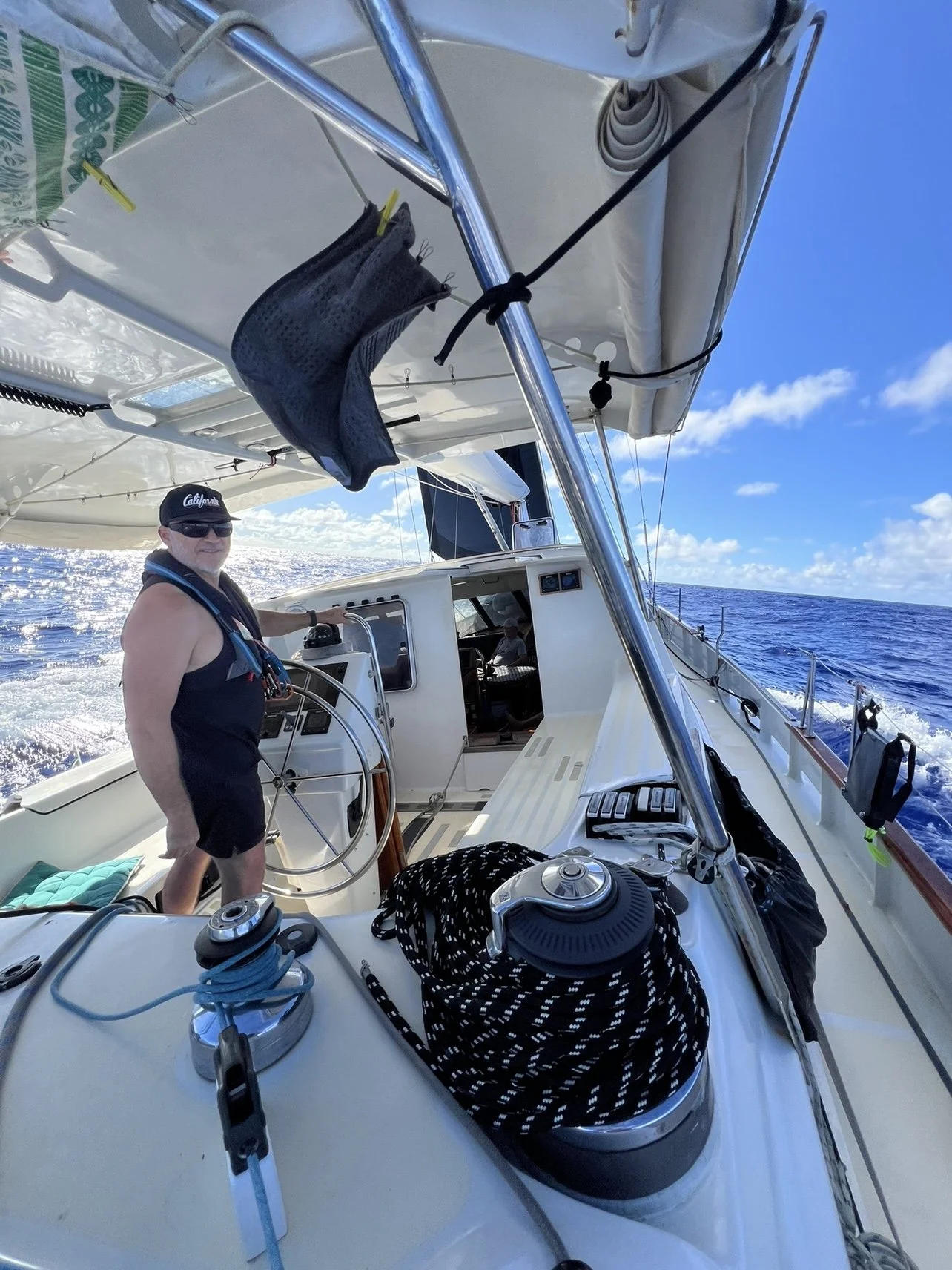 Scott on the helm, taking us to the Cook Islands