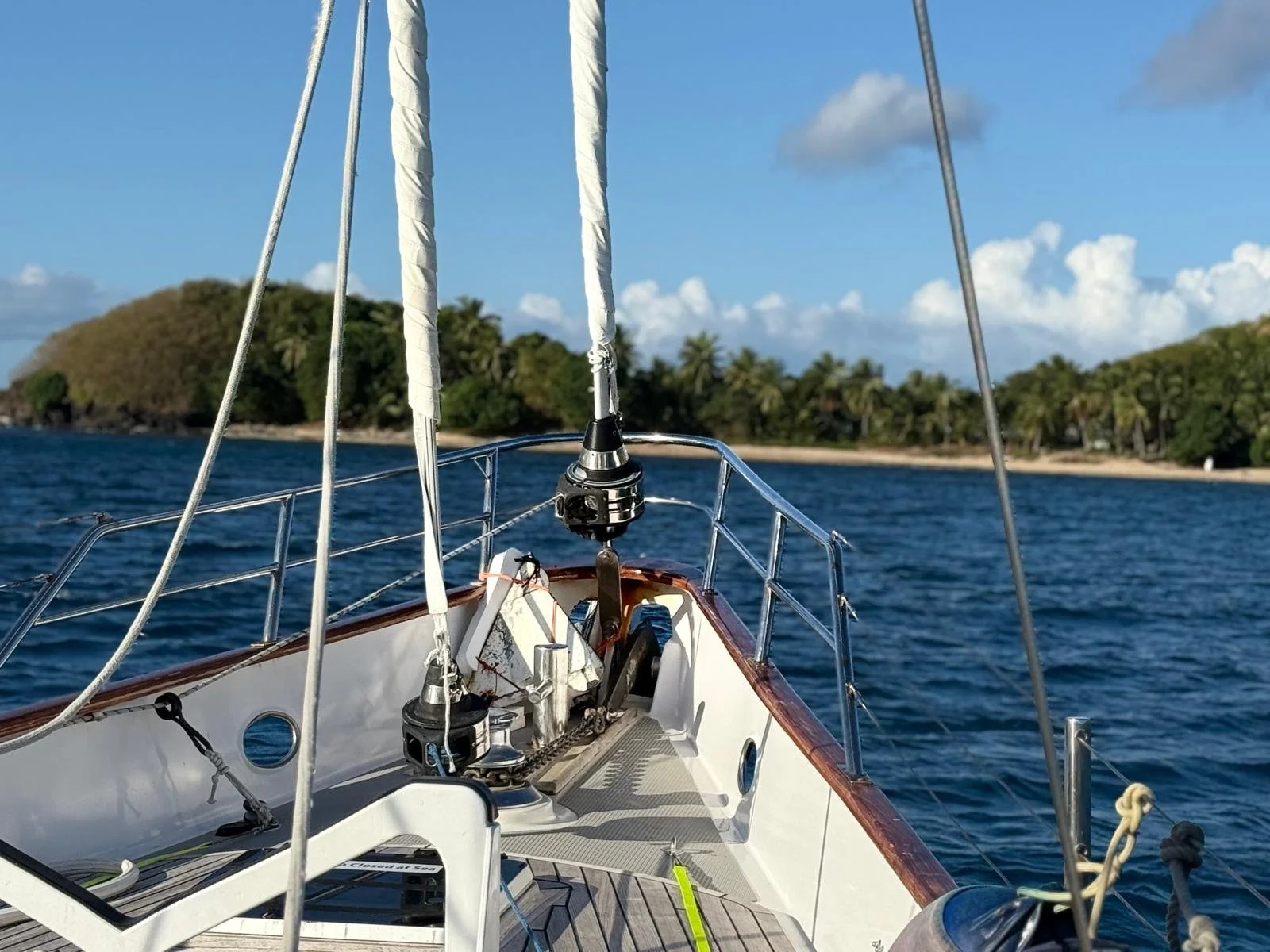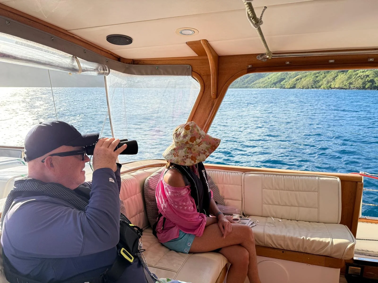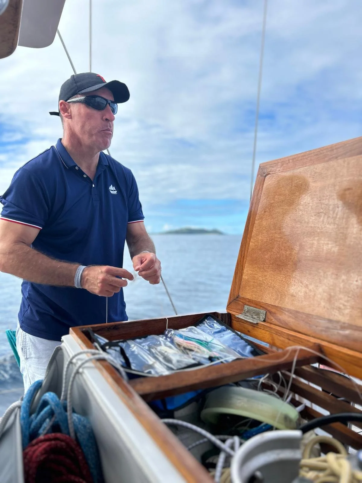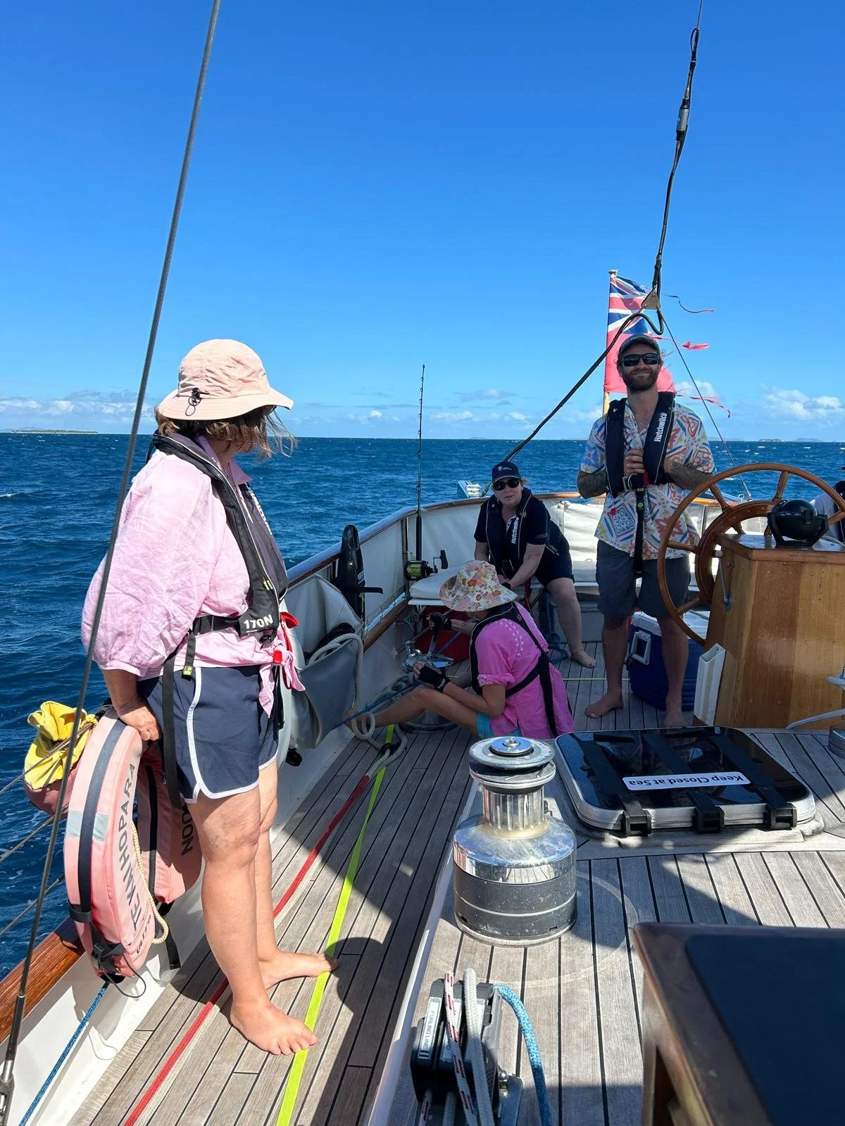 So far it’s day three of our first Yasawa Island cruise of the season and only one bait fish has been caught but not for lack of trying. Let me introduce Declan and Paul: they drop a fishing line out whenever they can. Amusingly watching their efforts are the rest of the crew: Ian, Heidi, Heather, and Suzi. As well as fishing, the crew are enjoying reading books in the shade during our cruisy sailing weather. We spent our first night on anchor at Musket Cove, before sailing north to Waya Island and onwards to Somosomo Bay. Tomorrow we go even further north to Nacula Island!